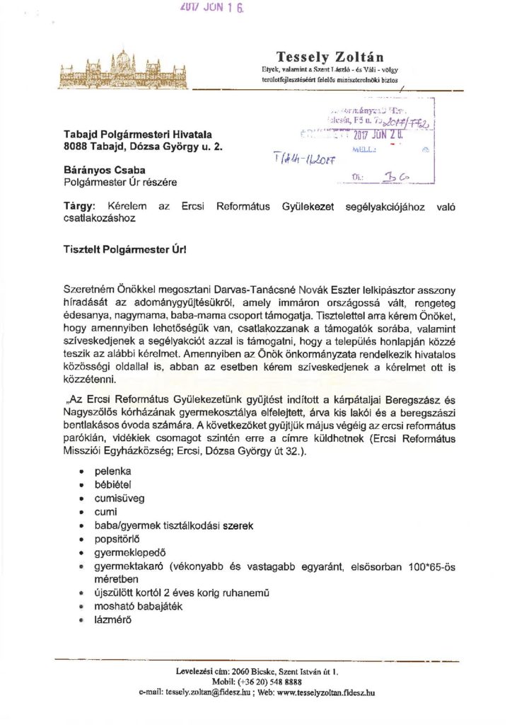 Tabajd Község Helyi Választási Bizottságának dokumentumai