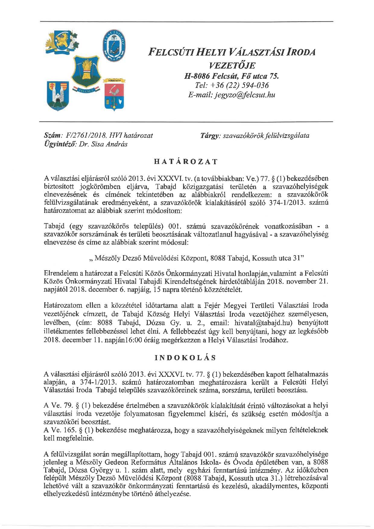 Határozat – szavazókörök felülvizsgálata