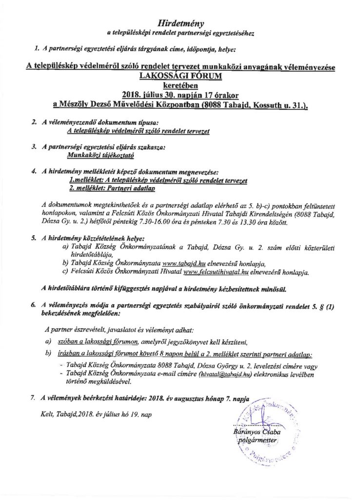 Hirdetmény Hírek Közérdekű közlemények Hirdetmény a településképi rendelet partnerségi egyeztetéséhez 2018. július 19. csütörtök2018. október 25. csütörtök siteadmin Hirdetmény 1. számú melléklete Hirdetmény 2. számú melléklete