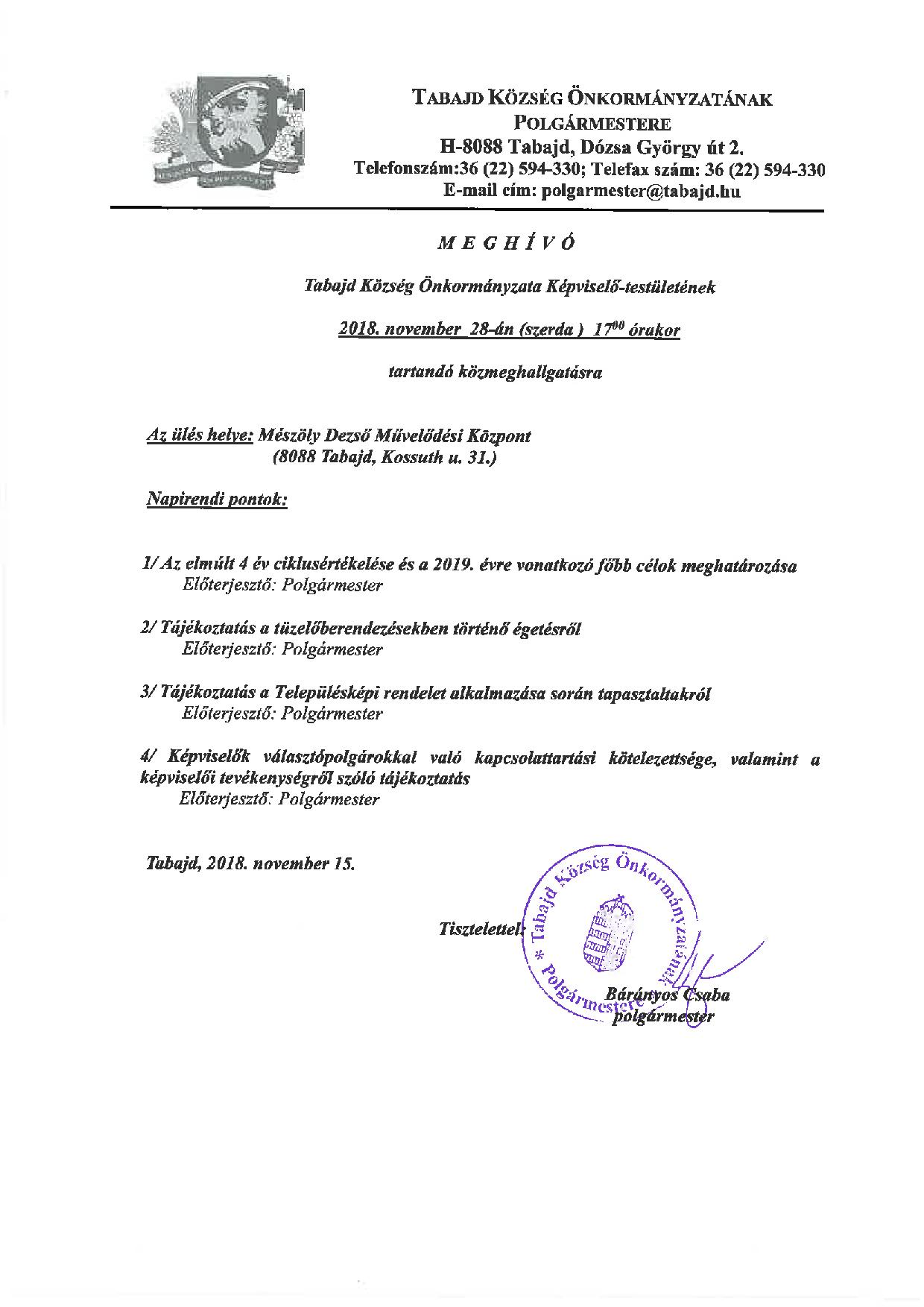 Tabajd Község Helyi Választási Bizottságának dokumentumai