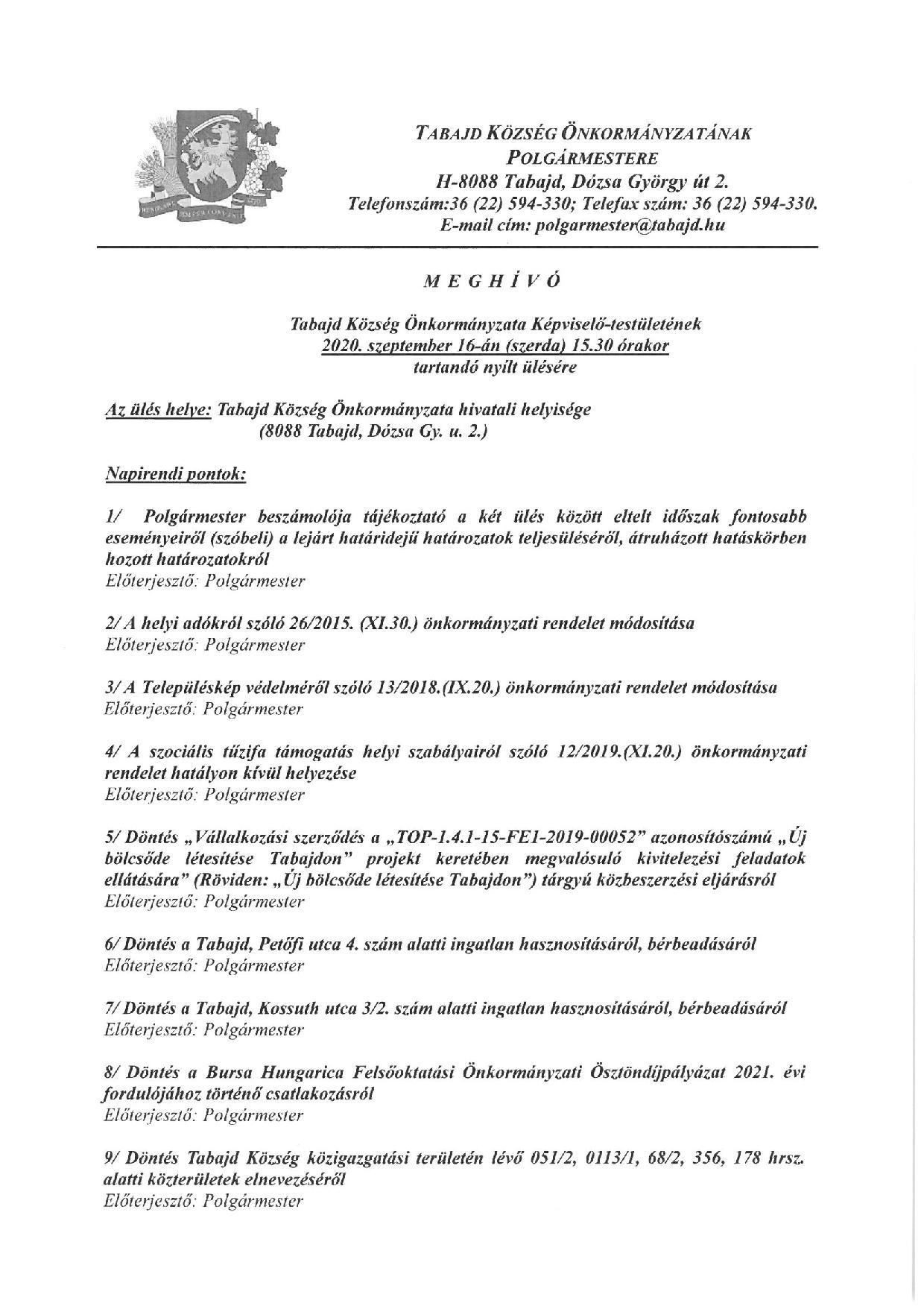 Hirdetmény pályázati felhívás önkormányzati ingatlan értékesítéséről (Tabajd 126 hrsz.)