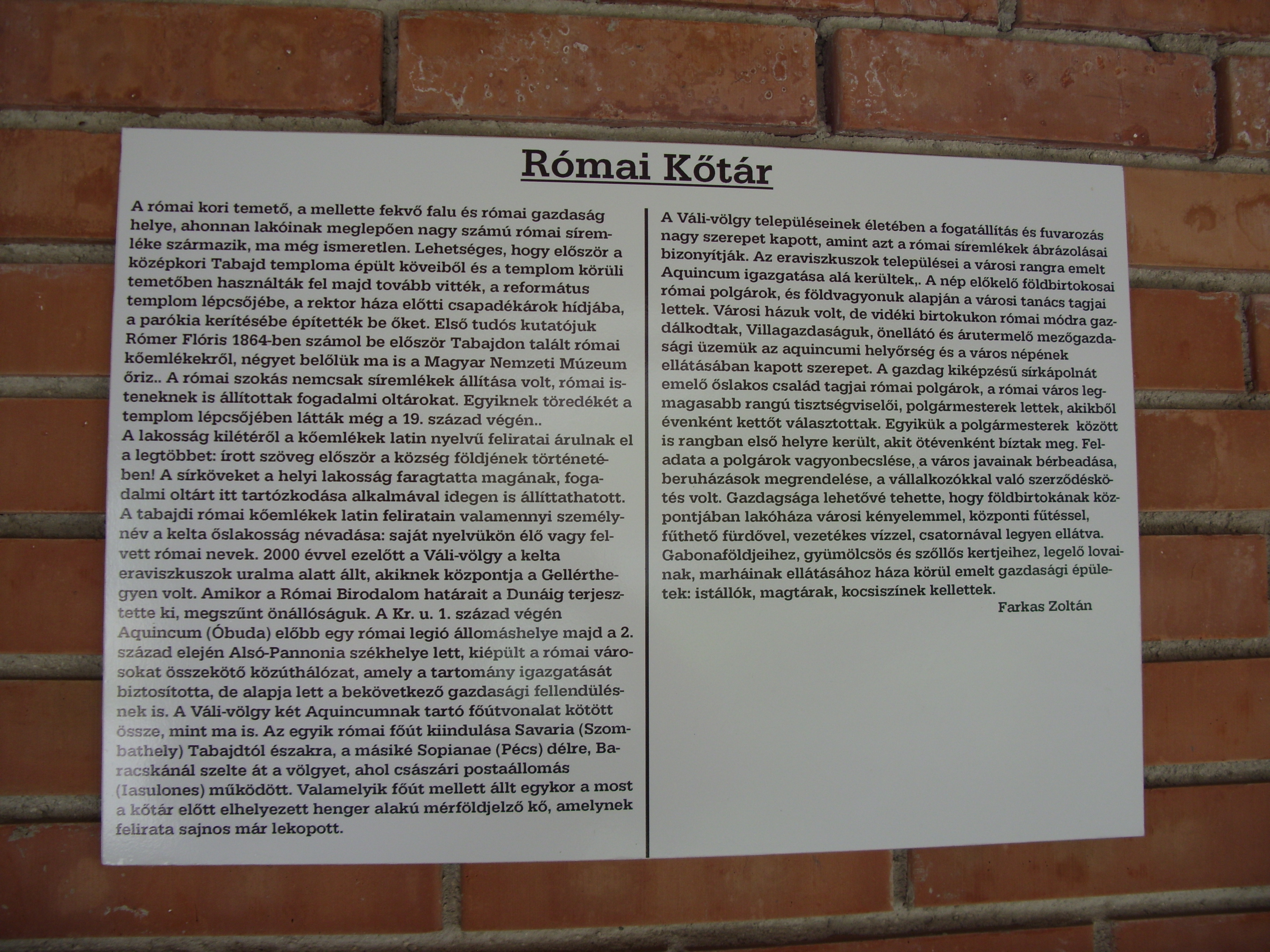 Magyar Nemzeti Múzeumban lelt.szám:107/1901.2 Sz: 87 cm M:280 cm V:30 cm Felállítás magassága: burkolaton