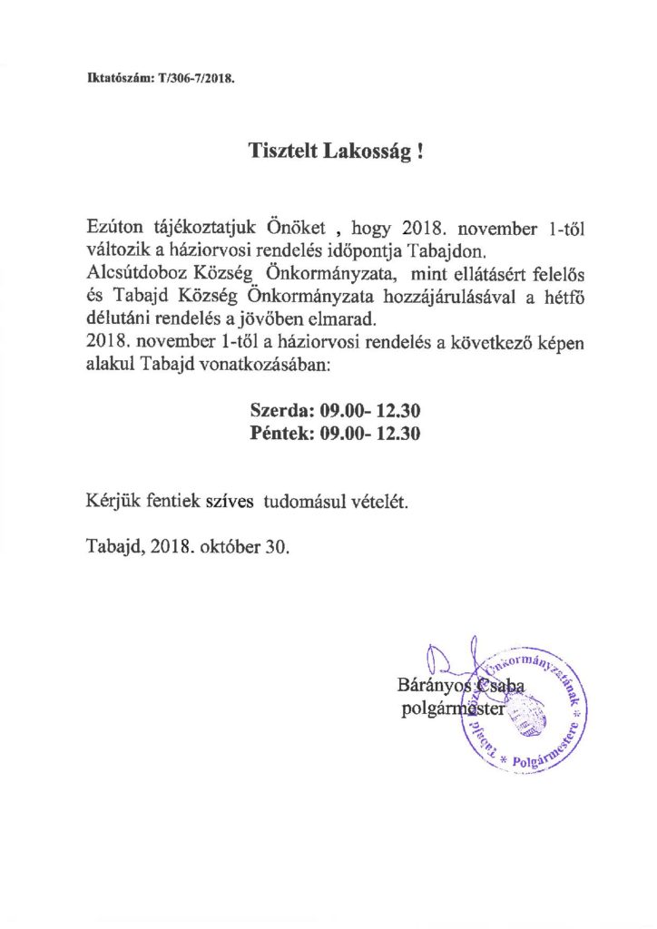 • Üdvözöljük Tabajdon