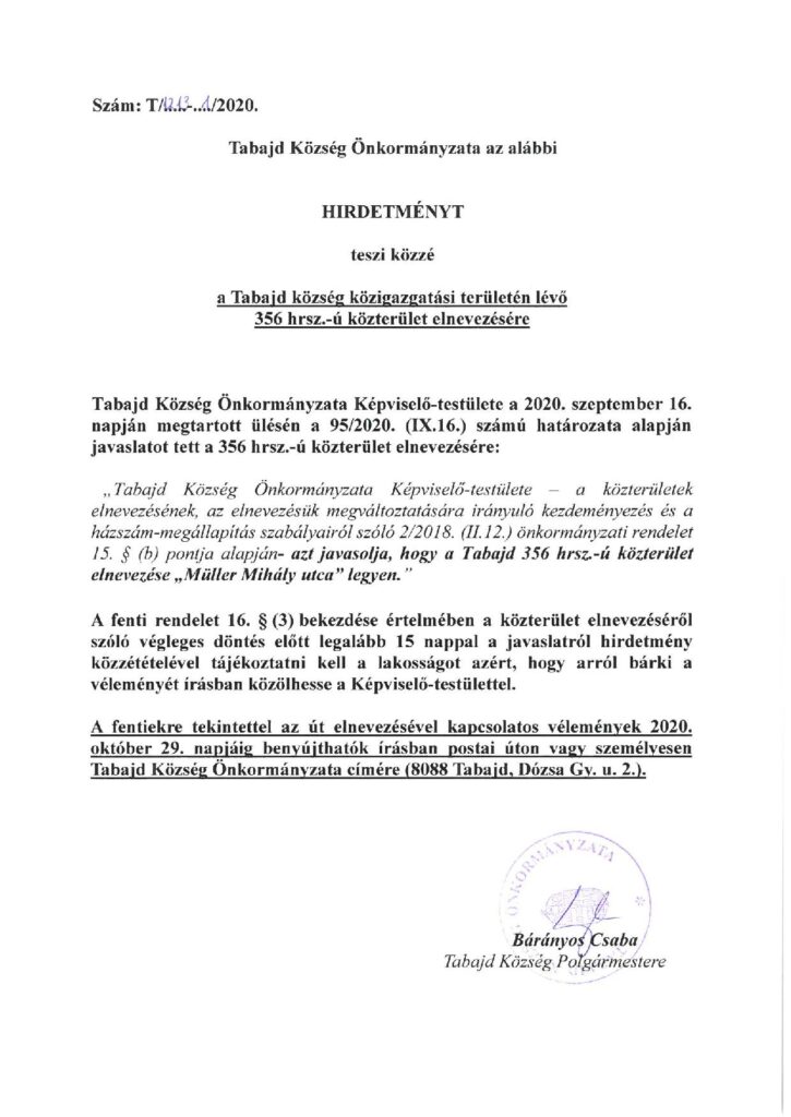 • ← Tabajd 0113/1. hrsz. közterület elnevezése